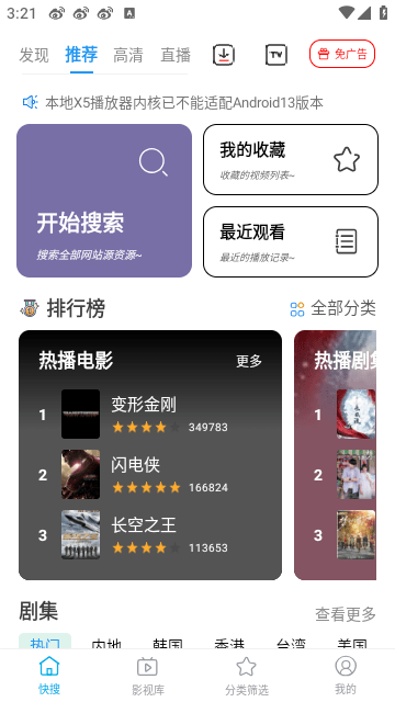 4、智能推荐:软件采用智能推荐算法,根据你的观影记录和喜好推荐最合适的影视剧集,用户可以将喜欢的影片收藏起来,方便以后再次观看,让你不再为选择影片而烦恼。