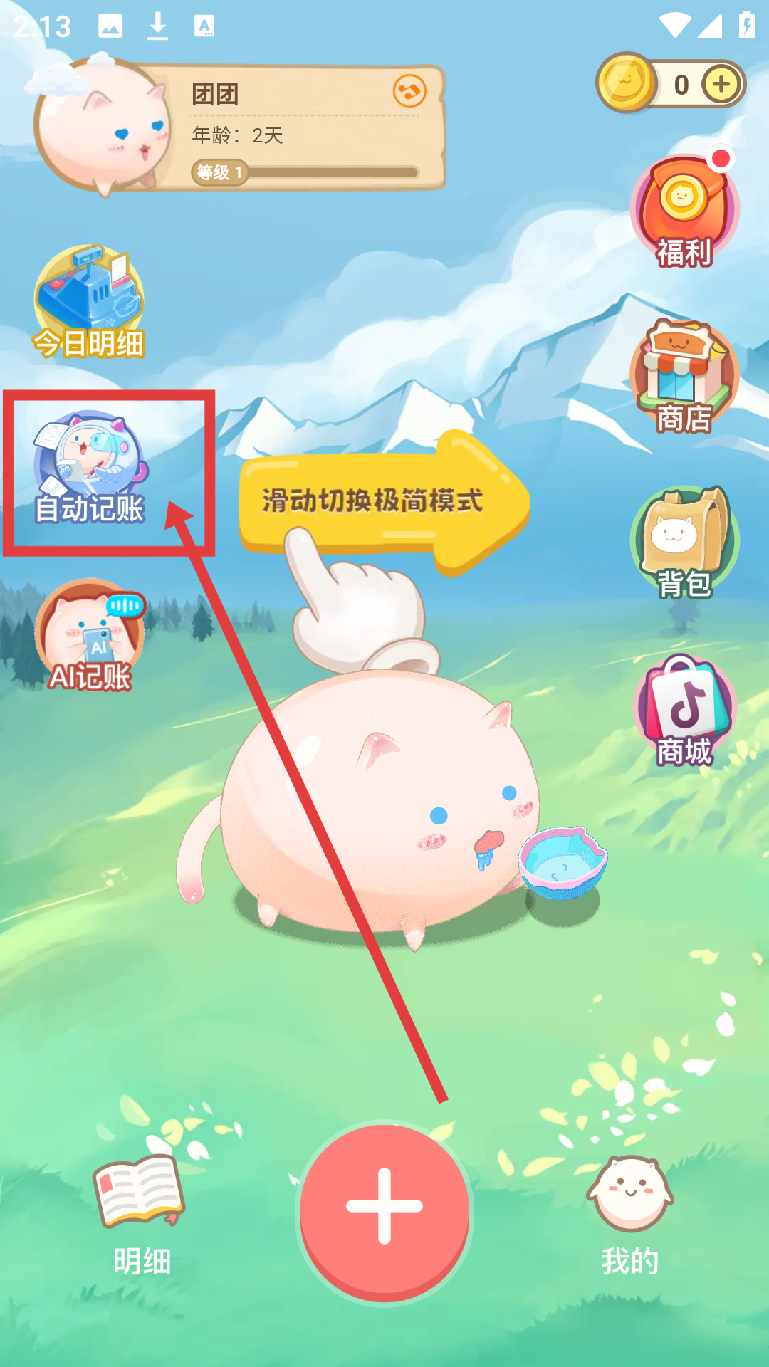1、在团团记账首页,点击【自动记账】,可进入自动记账设置页面,准备开启相关权限啦。