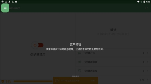 1、打开软件之后需要打开主开关启动保护,此切换可打开和关闭保护。当它是绿色时一切都很好;