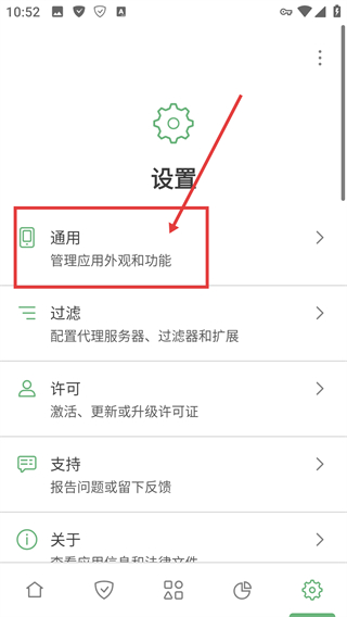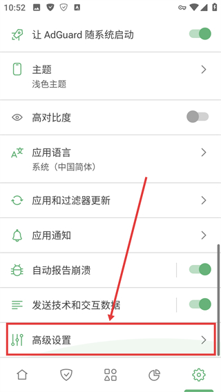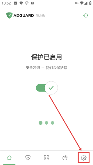 1、在【ADGUARD】主页面点右下角的【设置】按钮,能进入设置界面,后续可调整应用的各项配置啦。