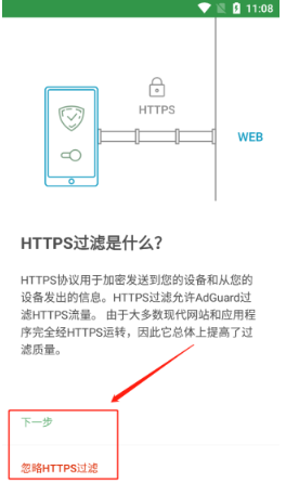 2、可以先了解HTTPS过滤,后选择“下一步”