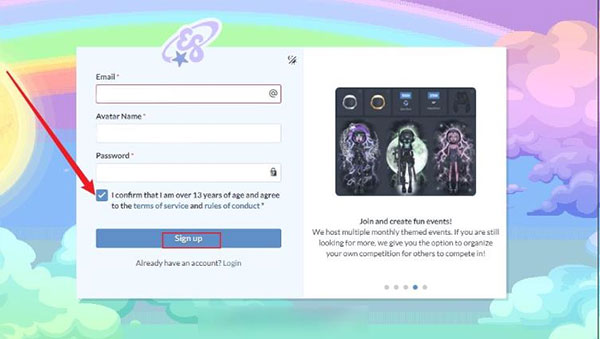3、如图所示勾选同意【注册条款】然后点击【Sign up】完成注册。