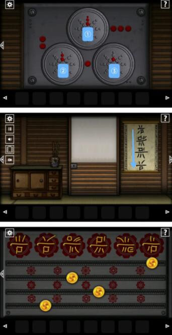 2.之后小伙伴们通过第二个房间前往到中庭,将我们的【灯笼】挂上右侧的柱子上获得道具【钥匙】,然后在前往第三个房间用【钥匙】将柜子打开拿到【火柴】以及吧柜子上的【香】给拿走,小伙伴们在这里注意卷轴里的提示,是对应后面的解谜;