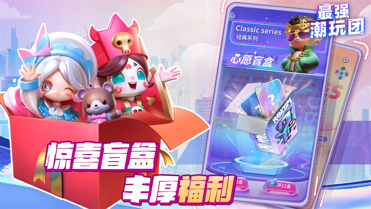 1、潮玩盲盒收集:游戏中有各种珍稀的潮玩物品,玩家可以通过消除方块来获得潮玩盲盒,并收集里面的物品。每个潮玩物品都有不同的属性和技能,玩家可以根据自己的喜好和策略来组建自己的潮玩团。