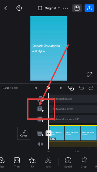 1、在视频编辑界面点击【T+】按钮,就能打开字幕相关操作菜单,准备添加字幕内容啦。