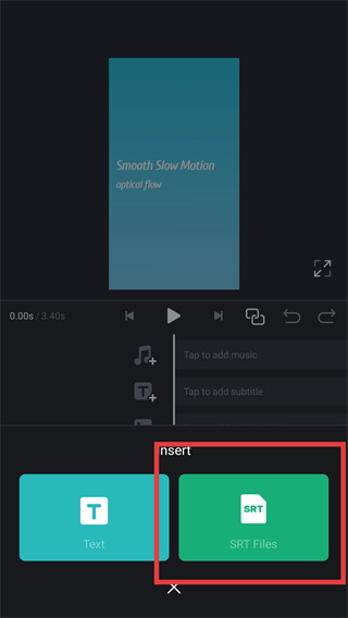 2、打开字幕菜单后选择【SRT-Files】选项,就能进入SRT文件的导入流程,为视频添加字幕文件哦。