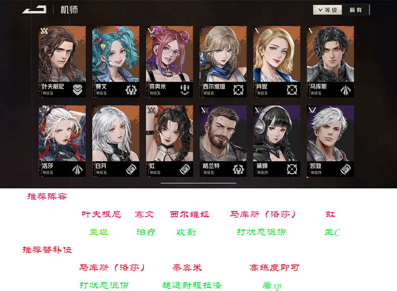 替补位理由:最求超绝刷资源这一类的很多情况下需要高输出频率,而不是那种奶盾。以及PVP。