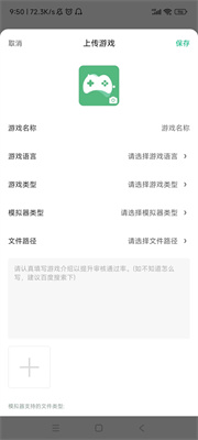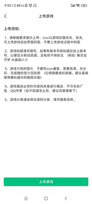 4、连接上传须知后,点击下方按钮,然后根据要求添加即可完成导入本地游戏了。
