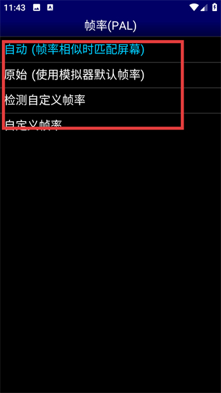 4、在帧率(PAL)菜单里可选择【自动-帧率相似时匹配屏幕】等选项,按需调整模拟器的帧率适配方式哦。