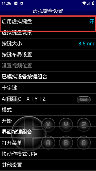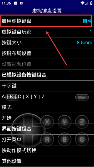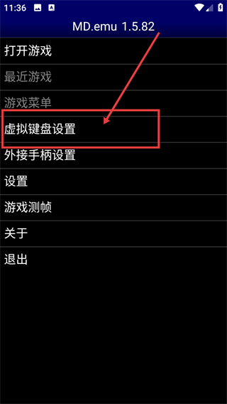 1、在MD.emu的菜单列表里点【虚拟键盘设置】选项,能进入虚拟键盘的配置界面,后续可调整键盘参数啦。