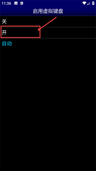 3、在启用虚拟键盘的选项页里点【开】,就能手动开启虚拟键盘功能,不用依赖自动模式啦。