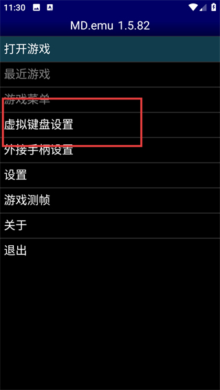1、在【MD.emu1.5.82】的菜单页找到【虚拟键盘设置】选项并点击,就能进入键盘的配置界面啦。