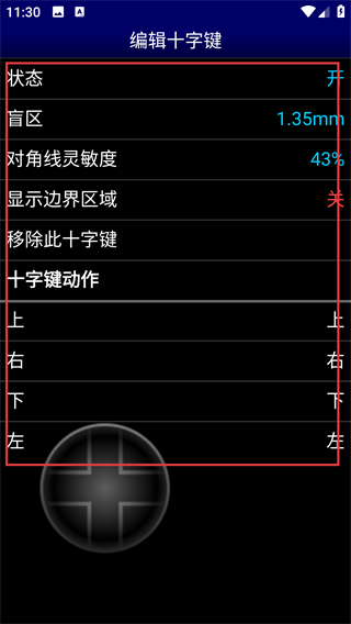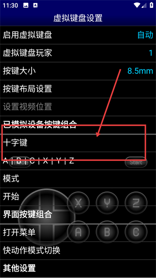 2、在虚拟键盘设置页找到【十字键】选项,点击它就能进入十字键的详细编辑界面,调整操作参数哦。