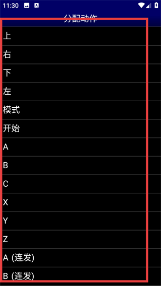 4、进入分配动作页面,能看到上-右-下等动作选项,选择对应选项就能给十字键分配不同的操作指令啦。