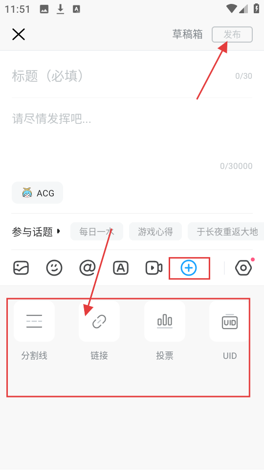 4、选好板块后,还可添加链接、投票等功能,最后点击【发布】按钮,即可完成帖子发布啦。