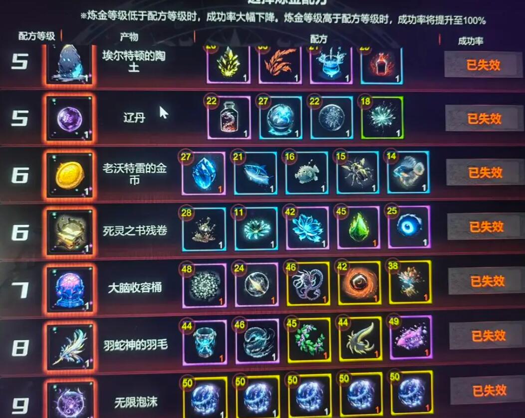4.不需要按照配方一个等级一个等级炼制,根据小提示2搭配价值30的炼金材料进行自由炼制可以直接炼金到等级5的炼金等级。