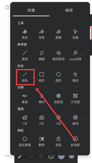 2、在功能菜单的形状分类里选择【线条】工具,即可进入线条绘制的编辑状态啦。