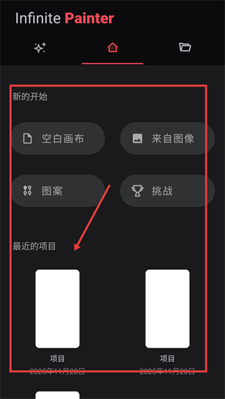 1、在【Infinite-Painter】首页,选“最近的项目”里的目标作品,可进入对应的编辑页面,开启创作哦。