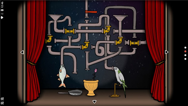 3、花插在盆里,连接水龙头(中间入口),得到鸟食(左边的入口),鸟生出的蛋扔进平底锅(右边入口),拿到蛋里的虫子喂鱼(右边入口);