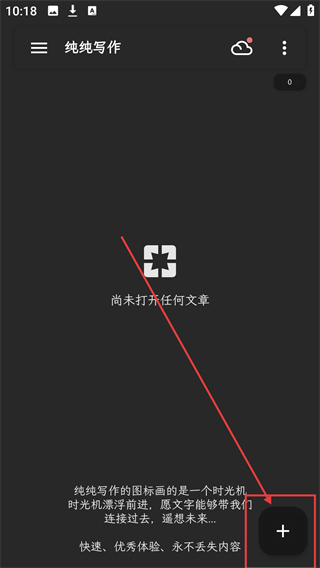 1、在【纯纯写作】首页,点右下角的加号按钮,可新建文章,进入编辑页面开启写作啦。