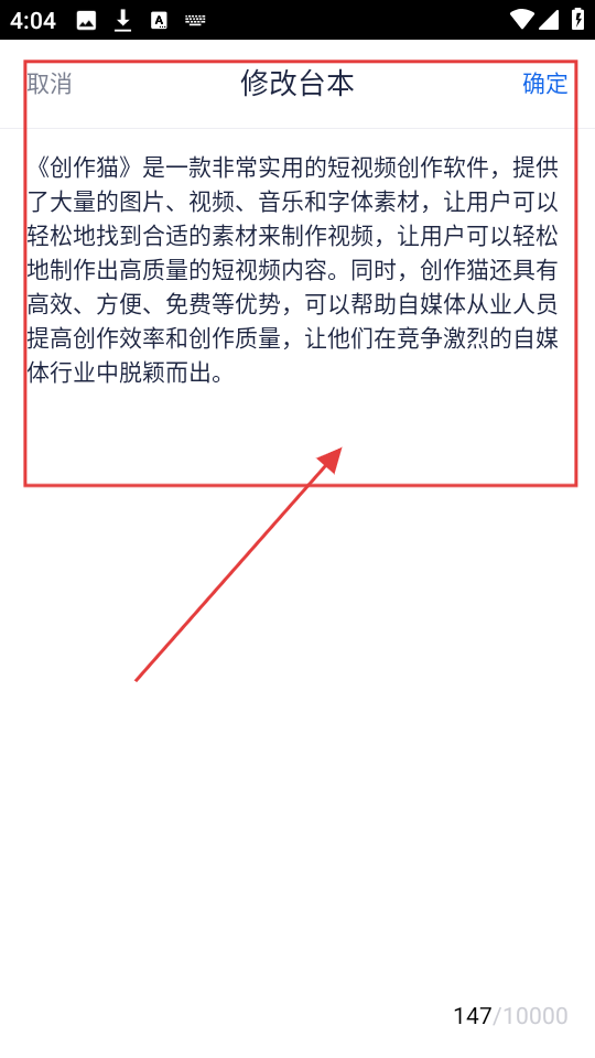 3、在修改台本页面,输入需要的台本内容,输入完成后点击【确定】就好啦。