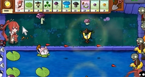 4、面对大波僵尸的入侵,我们还可以种植更多的娘化植物来抵抗。