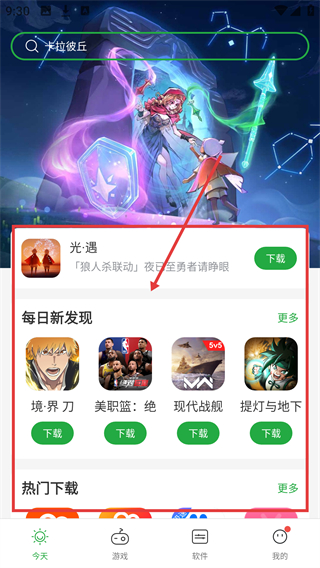 1、在首页浏览【每日新发现】板块,选择心仪游戏,点击对应区域就能进入详情页啦。
