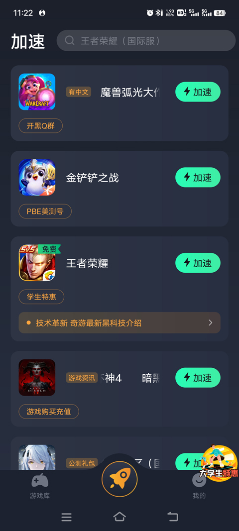 1、在本站下载魔兽大作战国际服,游戏需加速启动,找到该游戏,然后点击右侧加速;