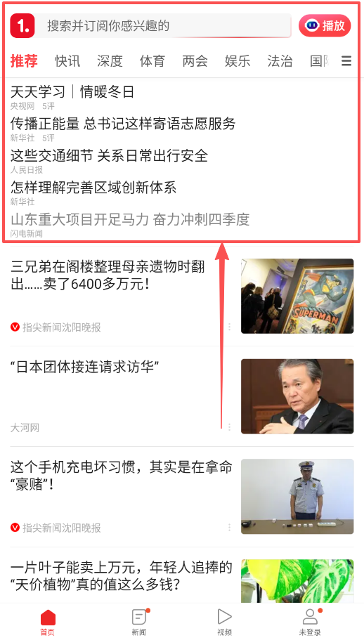 2、浏览与订阅内容。登录后回到首页,可以看到“推荐、快讯、深度”等众多频道推荐。