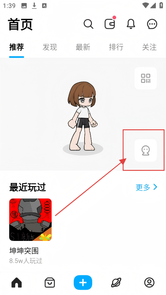 1、首页有个人形象相关图标,点击它进入形象设置页面,能给角色换装哦。
