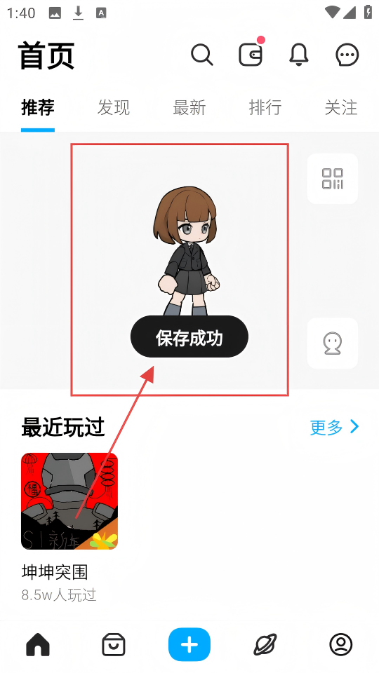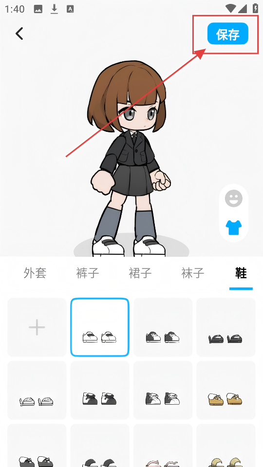 3、给角色搭配好整套服饰后,点击右上角【保存】按钮,就能保存角色的新形象啦。