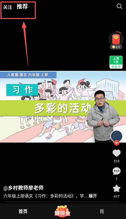 2、接着,进入首页后关注推荐内容,你还可以浏览各种学习资源,像六年级语文习作视频,点击播放并完成简单互动。