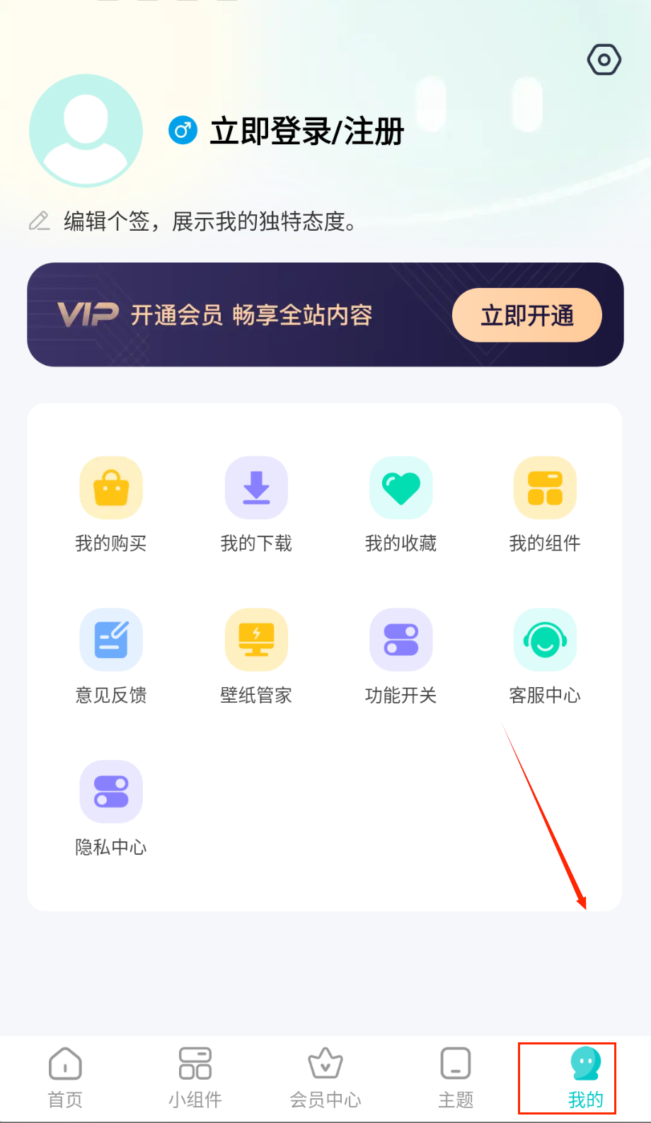1、打开软件后首先来到"我的"页面,点击顶部头像区域完成登录注册,这样能解锁个性化功能,编辑个性签名展示独特态度。