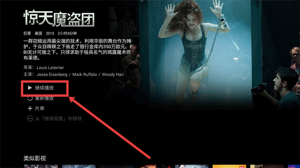 2、进入影片播放页面后,点击【继续播放】按钮,可继续观看影片啦。