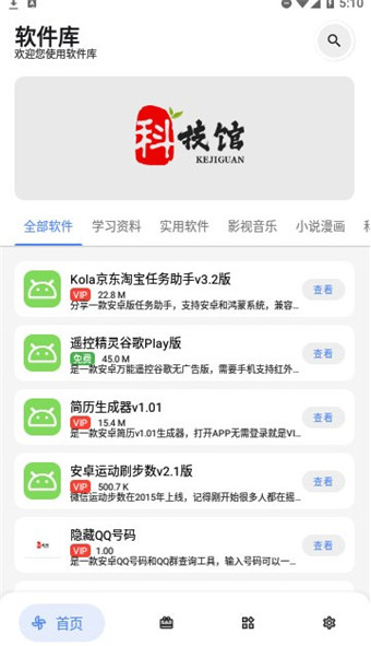 2、科技馆当中有着kola京东淘宝任务助手、遥控精灵谷歌play版、简历生成器、安卓运动刷步数、隐藏QQ号码等等功能!