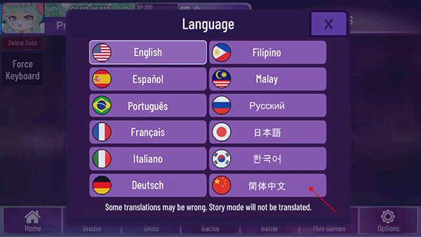 2、或者开始游戏后,点击右下角options按钮,选择language选项