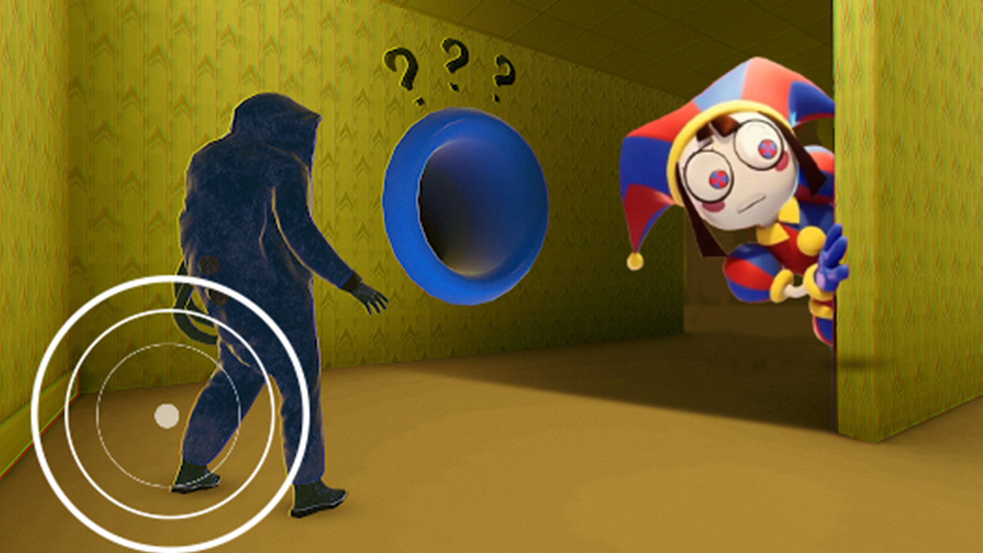 2、紧张刺激:游戏中玩家在密室里,无论玩家在哪里小丑都会跑到你旁边,这时玩家人物心跳会加快提示恐怖小丑就在附近。