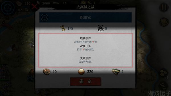 7、里面为玩家提供了主要胜利条件和次人物,主胜利条件决定游戏的胜利,次要条件不会影响胜利,但是完成的话将会会的奖励,点击确定,开始游戏;