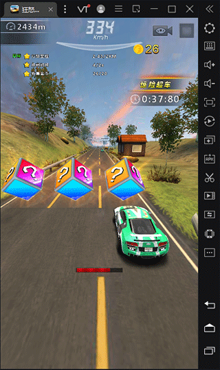 1、通过向左或右边滑动可以控制赛车方向,同时躲避危险障碍。