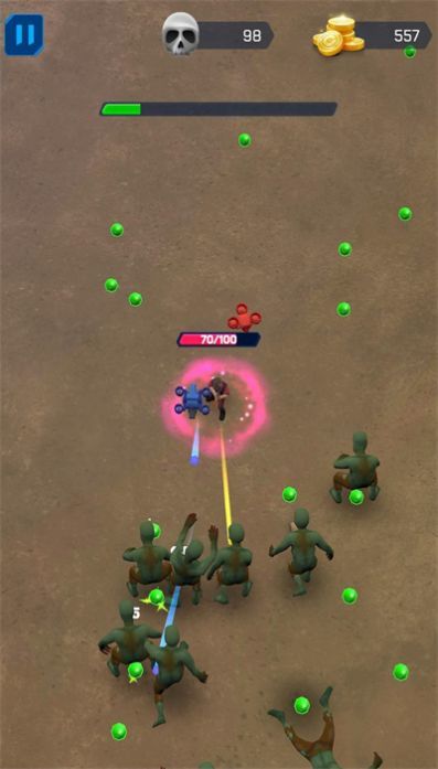 游戏是一款动作冒险生存放置类手游,游戏中玩家需要扮演一名幸存者,来对僵尸进行射击。