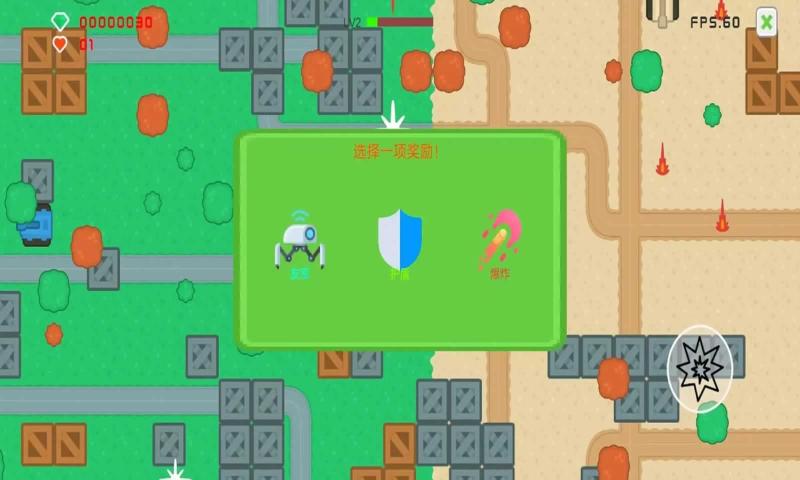 2、在地图里面可以捡到非常多并且效果不同的游戏道具,这些道具可以增加你自己坦克的攻击力或者血量上限。