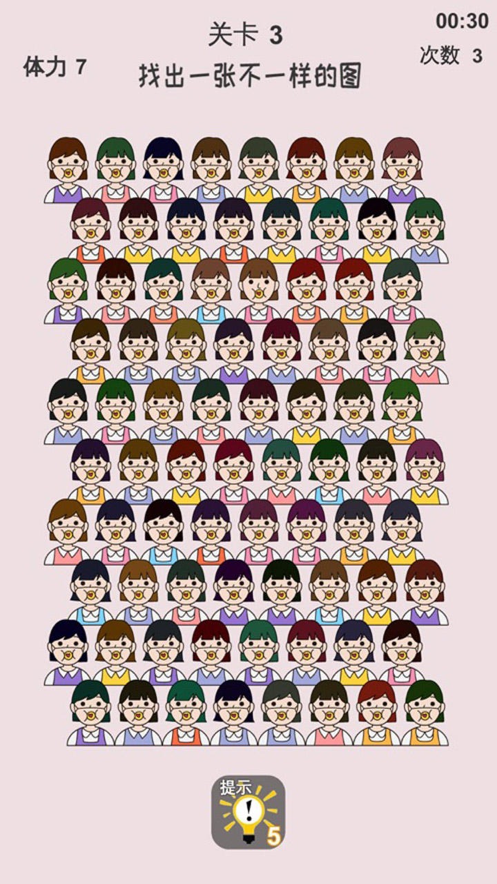 2、动脑找不同因为游戏的难度的逐步提升,每次游戏对局中的图片有差别的地方也会变得更加让人难以察觉,细微的地方非常让人容易忽略。