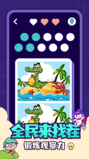 游戏中大量经典的找茬玩法,让玩家玩起来更加的有趣,同时还有很多的关卡等着玩家来挑战。