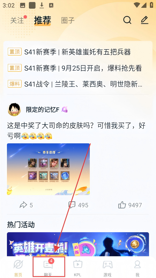 1、在首页时,点击底部的【聊天】,就能进入聊天页面。