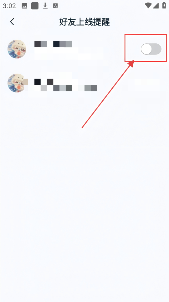4、在好友上线提醒页面,开启对应好友的上线提醒开关,这样好友上线时你就会收到提醒啦。