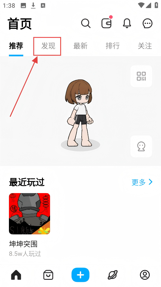 1、首页有【发现】选项,点击它能进入发现页面,探索更多有趣内容。