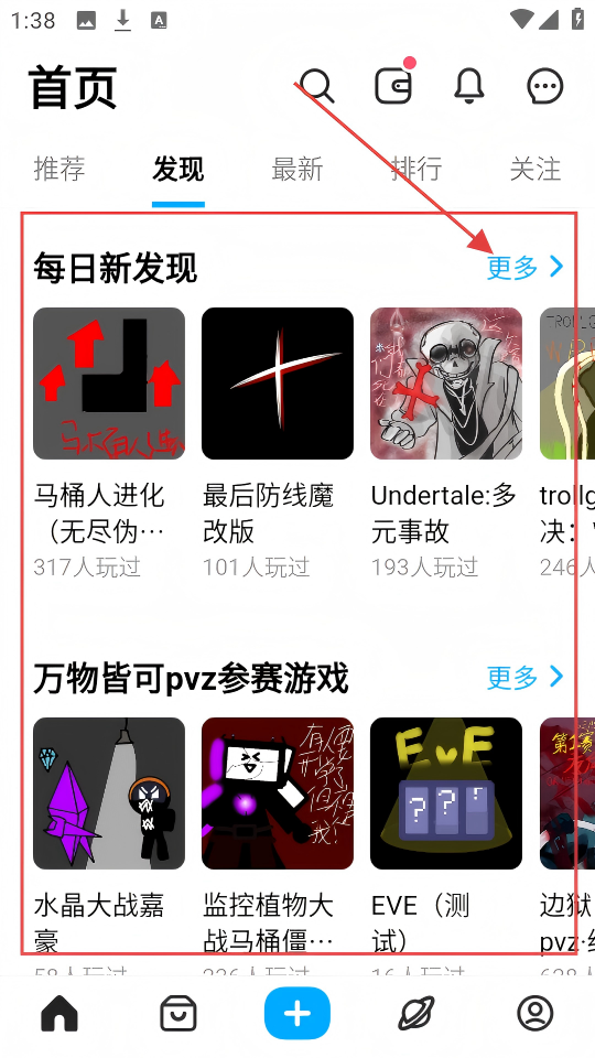 2、发现页面有【每日新发现】板块,点击【更多】,能看到更多每日新发现的游戏。