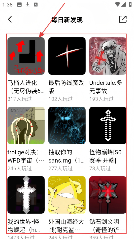 3、每日新发现页面有很多游戏,选感兴趣的,比如【马桶人进化】,点击进入详情页。