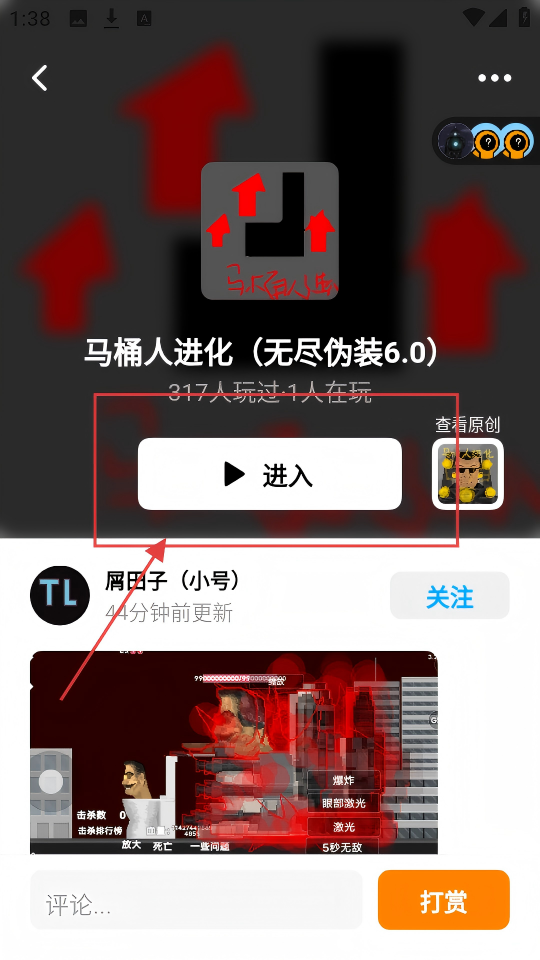 4、进入【马桶人进化(无尽伪装6.0)】详情页,点击【进入】,就能开启游戏体验啦。