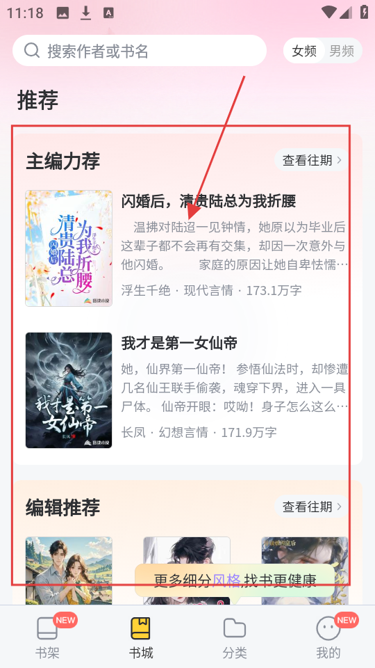 2、分类清晰:小说资源的分类非常清晰,用户可以查看分类,快速找到自己感兴趣小说资源类型。